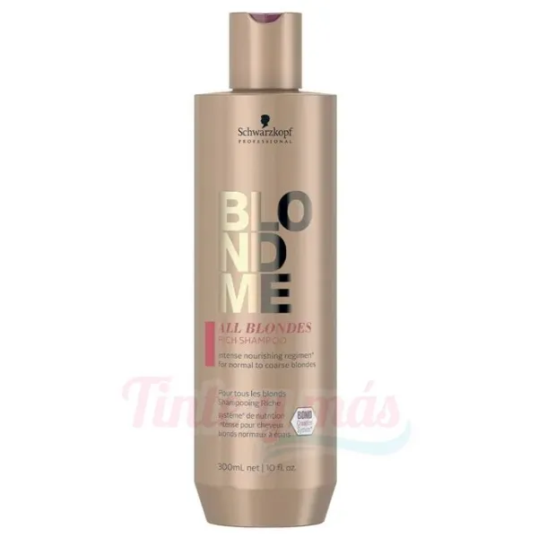 El champú Rich de Schwarzkopf Professional Blonde Me All Blondes está diseñado para completar y prolongar la vida del cabello rubio teñido en salón.