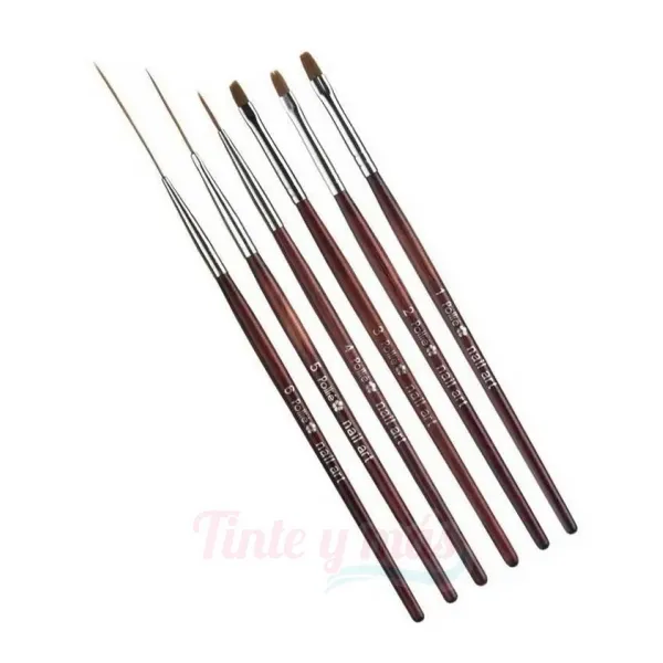 Pack de 6 pinceles de diferentes tamaños y modelos para decoración de uñas Nail Art.