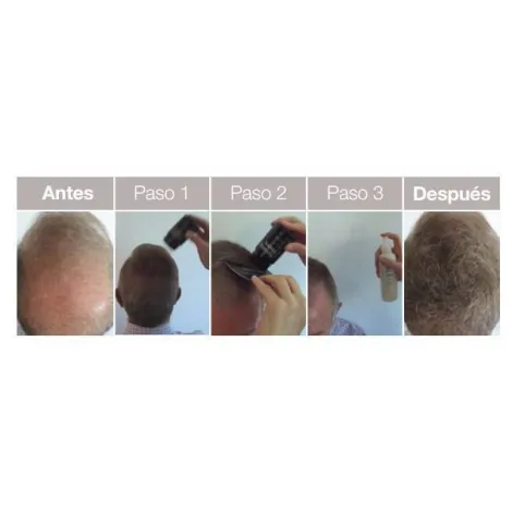 El cabello tiene que estar limpio y seco para que las fibras se puedan entrelazar correctamente. Dejar caer la cantidad deseada desde el aplicador a las zonas donde queramos disimular.